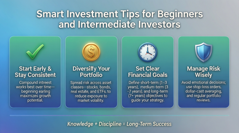 For beginners, these tips build a strong foundation. They explain how to start small, manage risks, and stay consistent. For intermediate investors, smart investment tips help refine strategies and avoid common mistakes. In both cases, the emphasis remains on long-term thinking rather than quick gains.